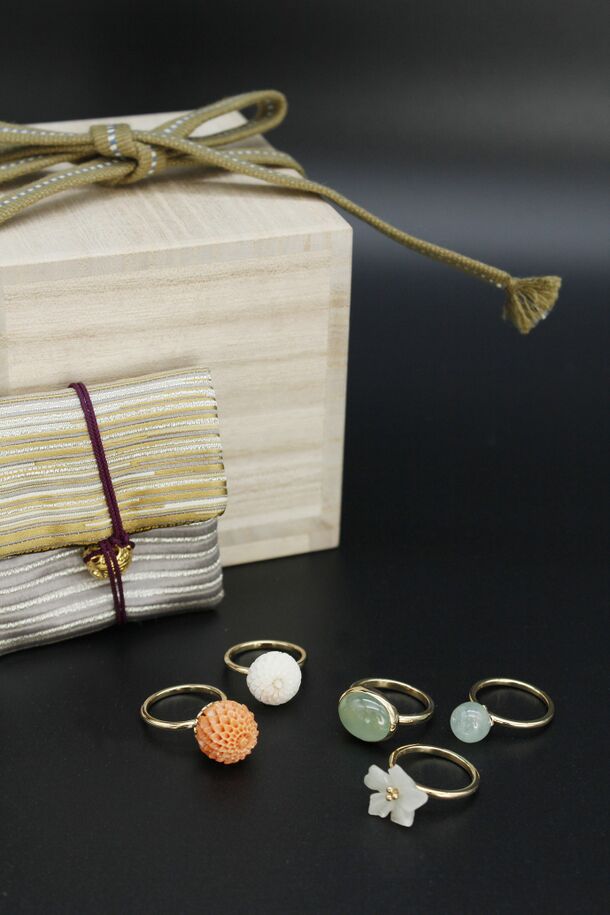 「Matsuyoi」は、以前より珊瑚やひすい、真珠など日本古来の自然素材をいかした作品を制作していますが、今回宝飾素材が取れる地域の伝統工芸の職人と協力し、素材の持つストーリーと古来から伝わる意匠をジュエリーデザインに具現化したジュエリーを制作、その第一弾としてリングを発表します。