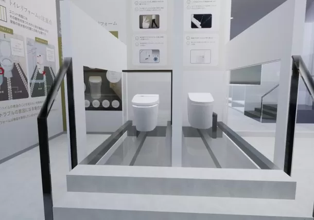 床構造に対応した配管が確認できるトイレ展示